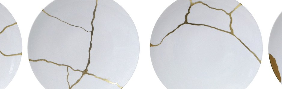 kintsugi em japonês significa consertar com ouro e é também uma técnica japonesa de reparação de objetos quebrados, especialmente cerâmicas e porcelanas, com laca misturada com pó de ouro. poderia ser basicamente colar os cacos com uma super cola dourada. mas não é.